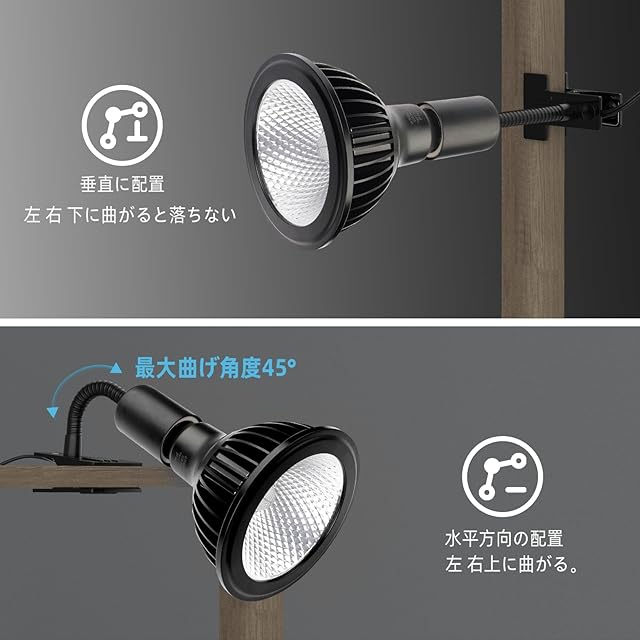 【クリップオンデザイン、柔軟で便利】穴あけもブラケットも不要です。このクリップオン植物ライトは、強力なクリップ設計を採用しており、テーブル、本棚、またはフラワースタンドの端に簡単に固定できるため、手を自由にして、補助照明をシンプルかつ効率的に行うことができます