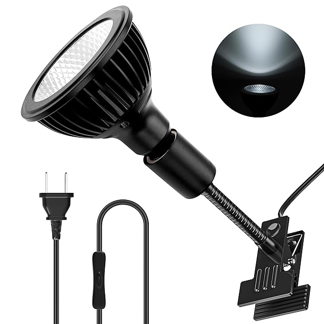 Pispoer クリップオン植物成長ライト、24Wフルスペクトル育成電球、Ra98高演色評価数、ビーム角38°(リフレクターカップを取り外すとビーム角を120°まで拡張可能)白色系5800K、ブラック