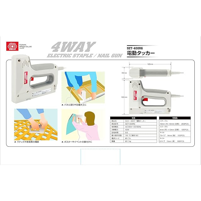 SK11 4WAY電動タッカー 4型ステープル 10型ステープル SET-400RG