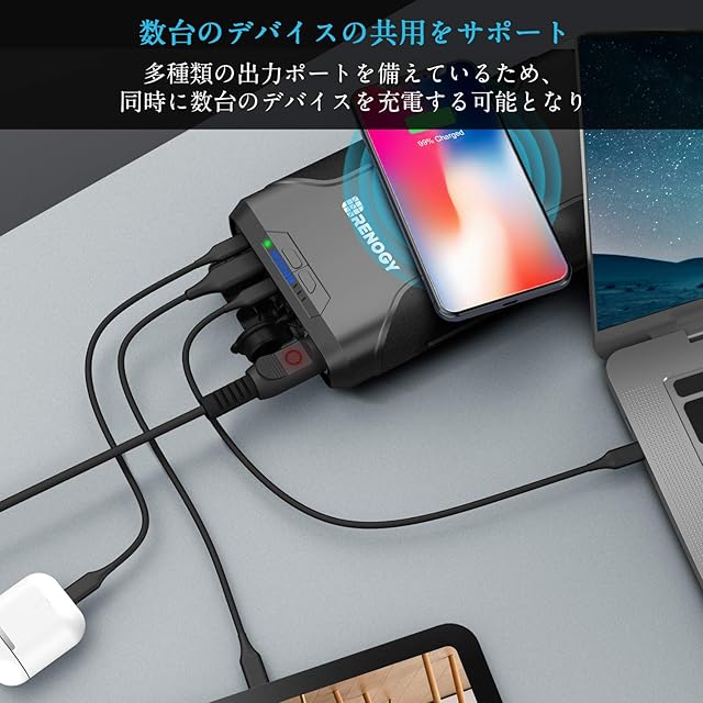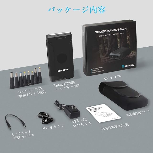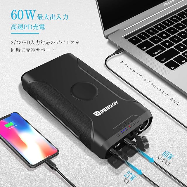 Renogy モバイルバッテリー ポータブル電源 72000mAh 266Wh PD出力対応 12V Type-C入力対応 シガーソケット搭載 急速充電 ノートパソコン/CPAP/iphone/switch/ミニ家電対応 LEDライト 車中泊 緊急時 防災