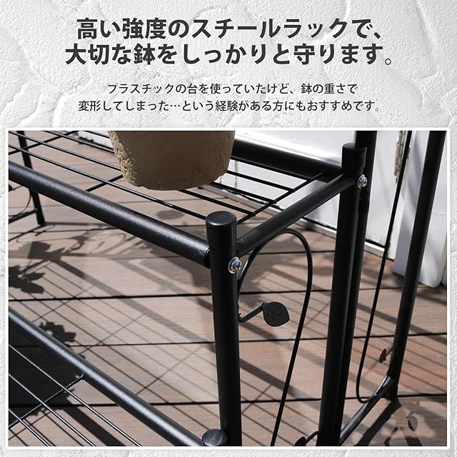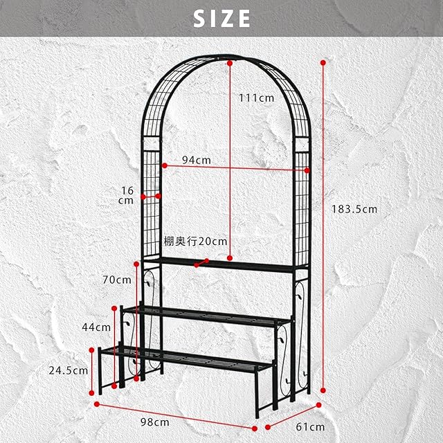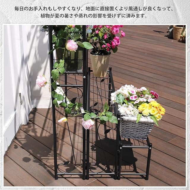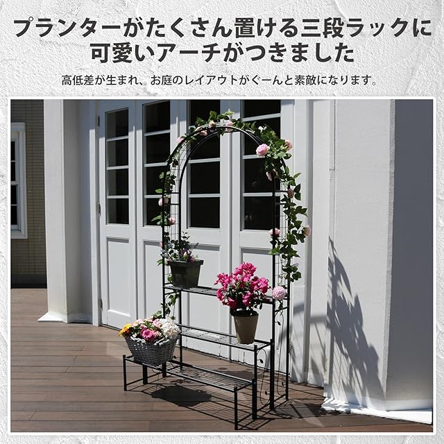 ガーデンガーデン アーチ型 アイアン3段プランターラック フラワースタンド 園芸ラック 幅98×奥行61×183.5cm ブラック スチール ARCH-RACK183