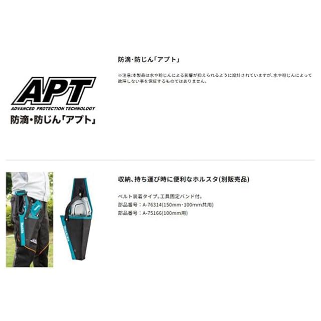 ハイパワーブラシレスモータ搭載。 防滴・防じん「アプト」