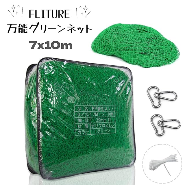 FLITURE 万能グリーンネット | 7m×10m 25mm目 烏除けネット 防球ネット 落下防止ネット 多目的ネット ロープ・バッグ付き | ゴミネット 防獣 防鳥ネット 鳥獣ネット 防護ネット 飛散防止 安全ネット 防犯 ネット 万能ネット 荷崩れ防止 鳥から田畑や果樹を守る ネット 網