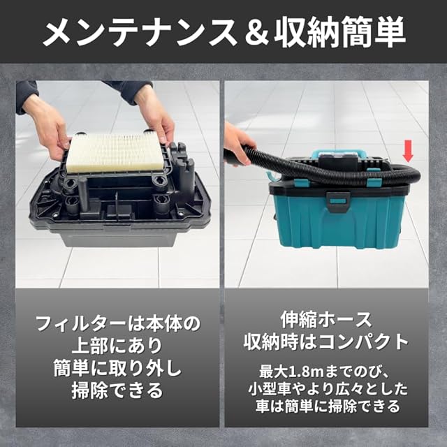 作業場の集じんから、車内の掃除、水汚れの吸引まで幅広くお使いいただけます。