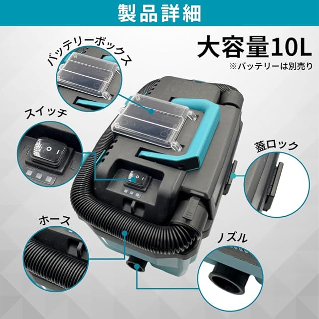 マキタ (Makita) バッテリー 対応 コードレス ブロワ バキューム 集塵機 乾湿両用 掃除 大容量 18V バッテリー 使用可能 互換 充電式 電動工具 日本語説明書 バッテリー 別売り