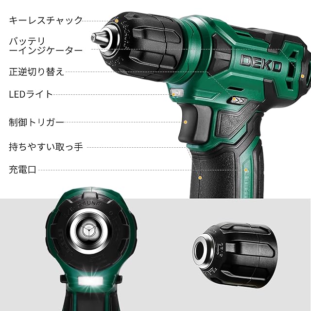 【便利な電動ドリル付き】通販の家庭用工具セットと違い、DEKO新発売の126点組工具セットは木材の穴あけやネジの締め付けなどに欠かせない電動ドリルも付き、作業性を一気にアップさせます。