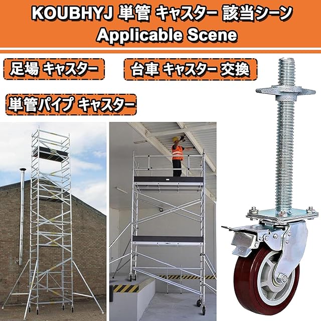 【幅広く適用】キャスターは、足場作業台、高所作業台、高所作業車、脚立 馬、洗車台、単管足場、ショッピングカート、アルミ 作業台などに広く使用されています。