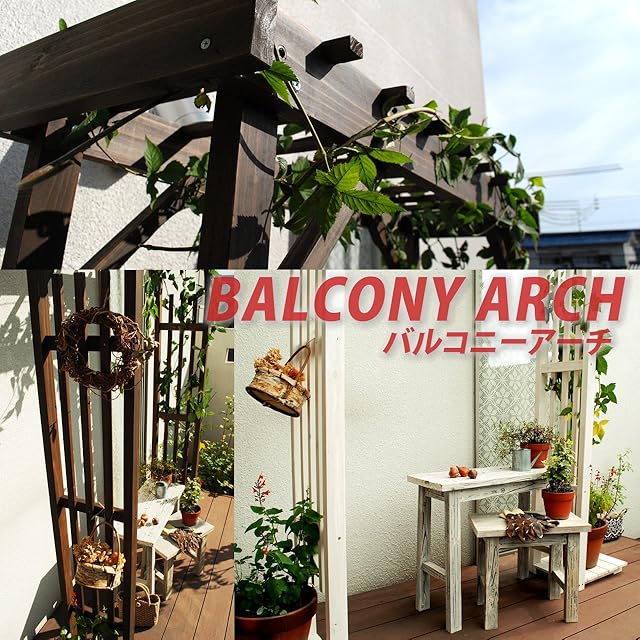 ガーデンガーデン 天然木製 バルコニーアーチ ダークブラウン 幅170cm×高さ190cm×奥行30cm ベランダ設置可 JSBA-1900DBR