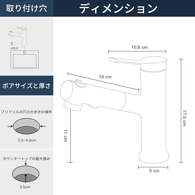 高品質洗面台 蛇口:セラミックバルブ、50万回の検査、100%漏れなし。各蛇口は問題が発生しないことを確認するためにテストされています。したがって、受け取る新しい蛇口には水滴が含まれている可能性があります。心配しないでください。