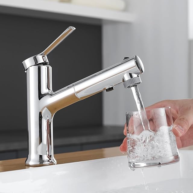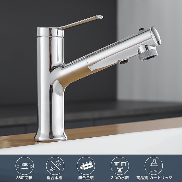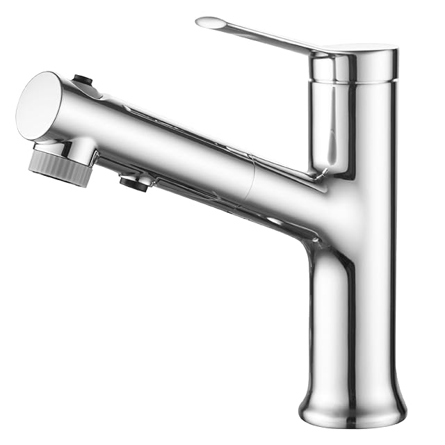 Kroias 蛇口 洗面台蛇口 洗面台 水栓 単水栓 ステンレス製 洗面混合水栓 噴水機能付き ホース引出し式 シングルレバー混合栓 3way出水モード 泡沫水流 シャワー水流 クロムメッキ
