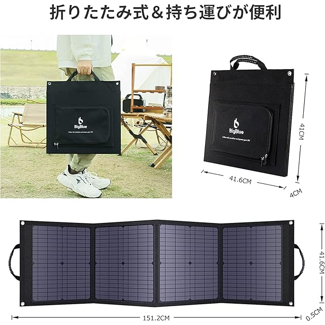 BigBlue 80W ソーラーパネル ソーラーチャージャー 折りたたみ式 DC(18V/4.45A)+ PD USB-C+ 2 USB 出力 急速充電 23%高変換効率 ポータブル電源対応 ポータブル電源ソーラー充電器 スマホ タブレット 超薄型 軽量 コンパクト省エネ・節電対策 防災グッズ 防水 18ヶ月保証