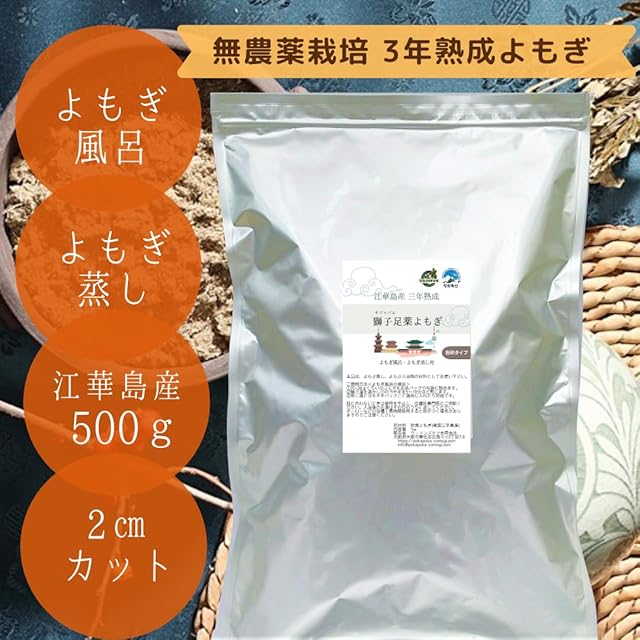 【三年熟成 獅子足よもぎ】江華島産 無農薬よもぎ, 3年熟成, 獅子足(サジャバル), よもぎ蒸し・入浴剤用カットタイプ (500g)
