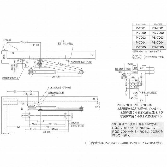 日本ドアーチェック製造 NEW STAR(ニュースター) ドアクローザ P-7003 シルバー ストップなし