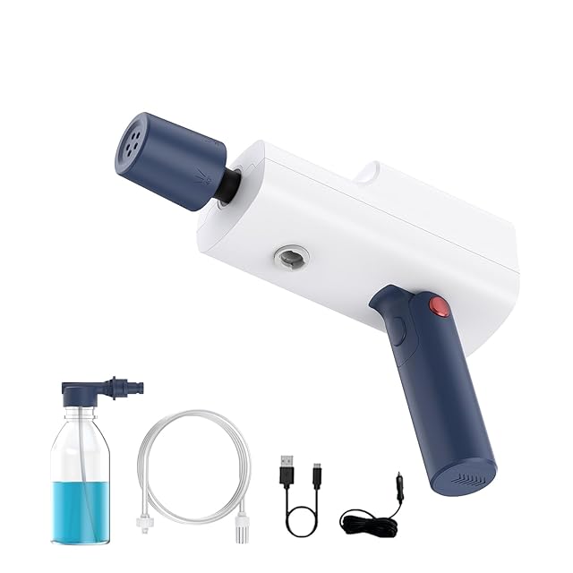 【組み立て簡単】 洗剤を使用しない場合は、本体とノズル、ホースだけ、そして洗剤を使用する場合は洗剤用ボトルを接続することで使用でき、組み立てが非常に簡単です。セット内容:高圧洗浄機本体1台、5in1ノズル、5メートルホース、洗剤用ボトル、USB充電ケーブル(充電用)、12Vシガーライター(給電用)、日本語取扱説明書。連続使用時間:約25分間。保証:1年間品質保証。