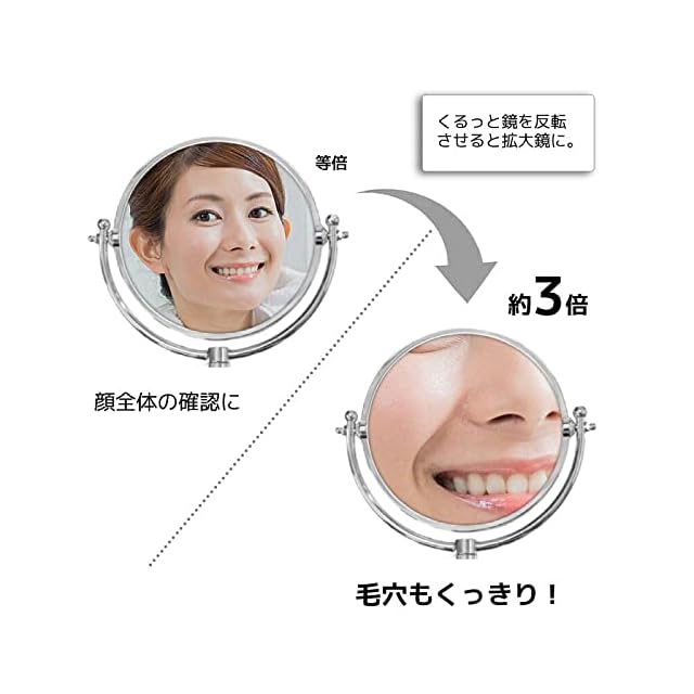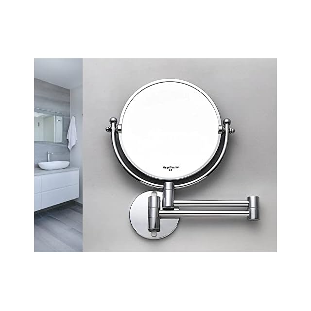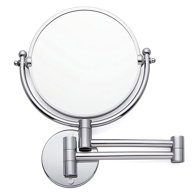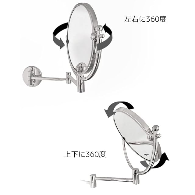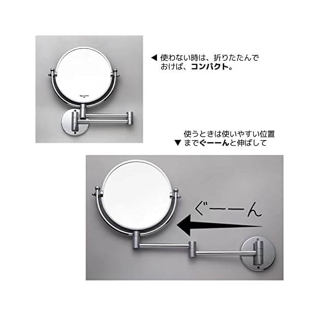 壁付けミラー メイクに便利なアームミラー 3倍拡大鏡 折りたたみミラー クロームシルバー 伸縮ミラー