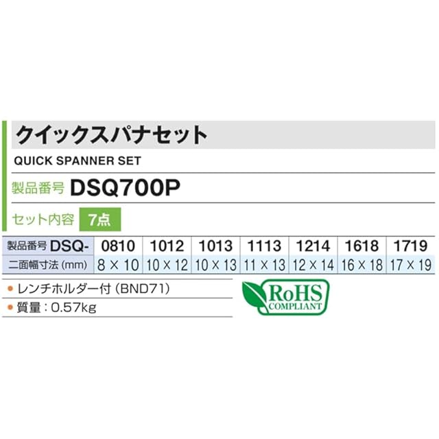 トネ(TONE) クイックスパナセット DSQ700P レッド 内容7点