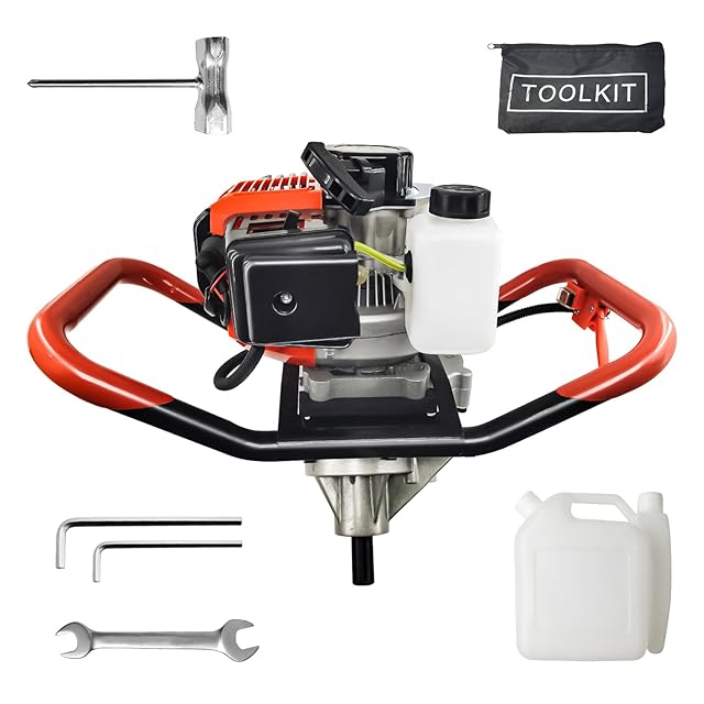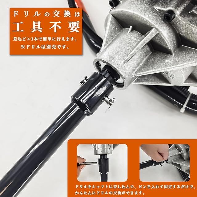 Howhite エンジンオーガー 穴掘り機 排気量52cc 出力1.9kw 2サイクルエンジン アースオーガー エンジン式 堀削機 支柱 杭打ち 下穴堀り 植樹 (本体のみ)