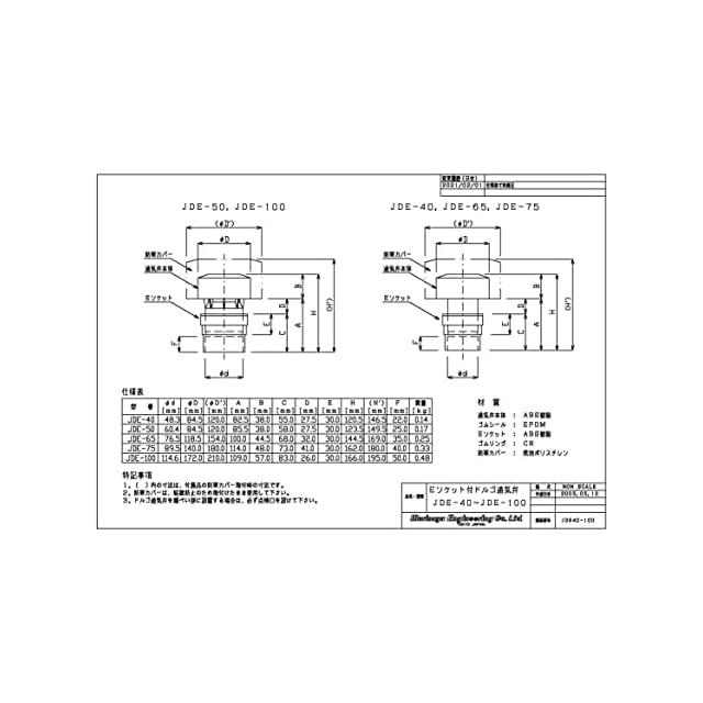 森永エンジニアリング 通気弁 ドルゴ通気弁 屋内用 JDE-50