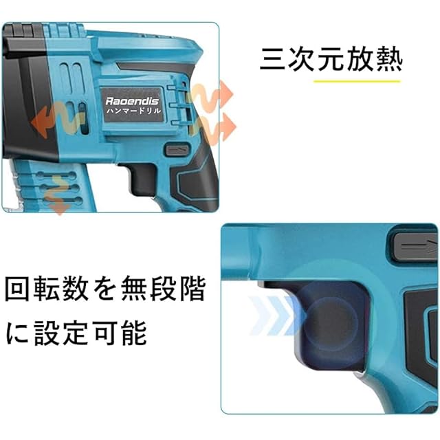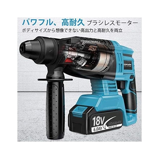 Kyohen 電動ハンマードリル バッテリーなし&収納ケース付き コードレス マキタ18Vバッテリー対応 充電式ハンマードリル 穴あけ コンクリート 鉄工 木工 パワフル プロ仕様 DIY