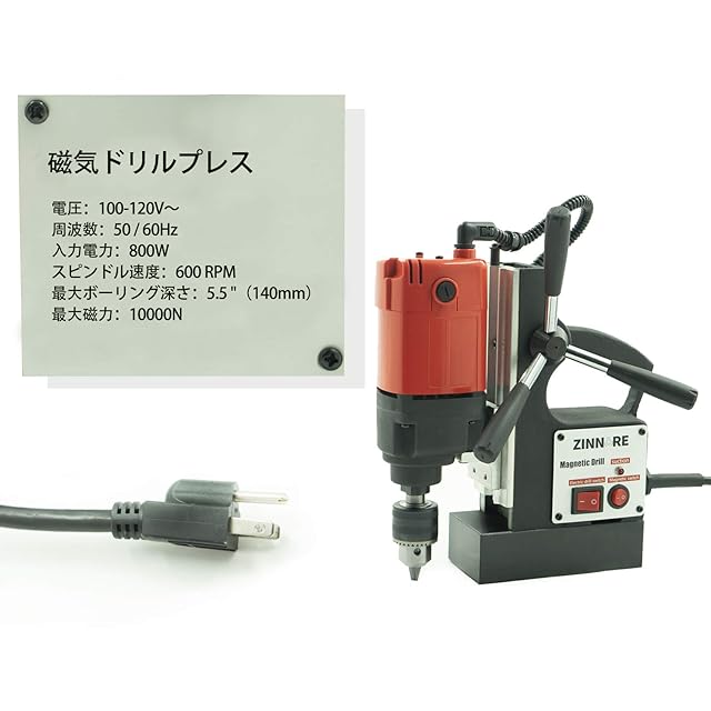 zinnore 磁気ドリルスタンド 磁気ボール盤 マグネット式ドリル 携帯式磁気応用穴あけ機 穴あけ能力140mm