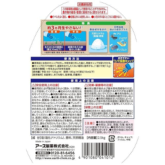 効果持続期間 除草効果:約3ヵ月(雑草の種類、環境、気候条件によって異なります)虫よけ効果:約1ヵ月