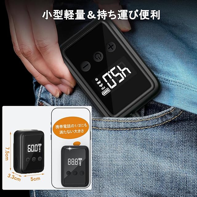 【強力な膨張と急速充電】高性能モーターにより、この強力なエアコンプレッサーは高速な空気入れが実現できます。フル充電されたポンプで 3 つの自転車タイヤを 0 PSI から 50 PSI まで膨張させることができます。 さらに、完全に充電するにはわずか1.5時間しかかかりません。初めて使用する前に完全に充電してください。