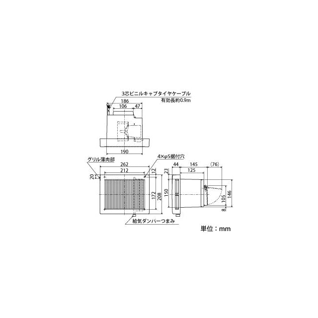 ・高静圧シロッコファン採用(プラスチック製)・ゴムプラグ同梱(2P)・プラスチックボディ・強制排気・自然給気タイプ・給気ダンパー開閉自在・壁据付専用(天井据付不可)