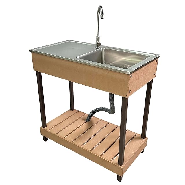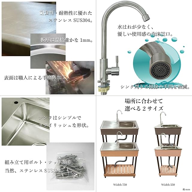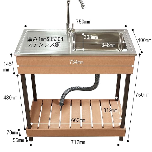 アイガーデン(igarden) 屋外 ガーデンシンク 流し台 ナチュラル 7540 高さ75×幅75×奥行40cm 手作りシンク 1mm厚みSUS304ステンレス鋼使用 サビに強い 手洗い アイガーデンオリジナル 人工木収納庫 組み立て式 蛇口 下水配管 アイウッド人工木製 ハンドメイド 家庭菜園 14526 (ナチュラル, 幅75cm)