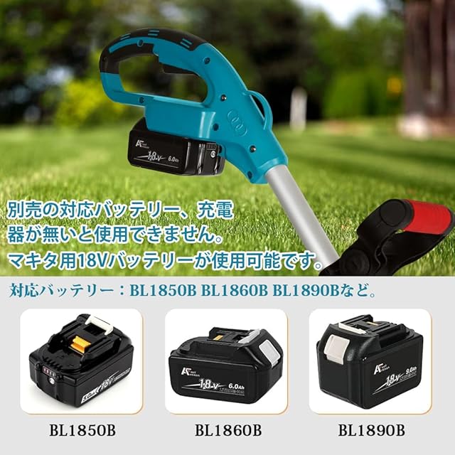 ※ 対応バッテリー・bl1850b、bl1860b、bl1890bなどのバッテリーが使用できます(充電器は別売りです) 刈刃の回転方向:左、反時計回り(作業者から見て)