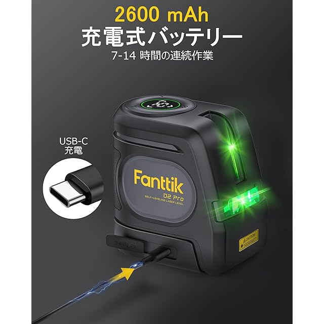 Fanttik D2 PRO レーザー墨出し器 自動水平補正 LEDディスプレイ レーザーレベル 屋外60m作業範囲 グリーン クロスライン 2600mAh 充電式 360°回転マグネットスタンド付 室内飾り インテリア 建築測量