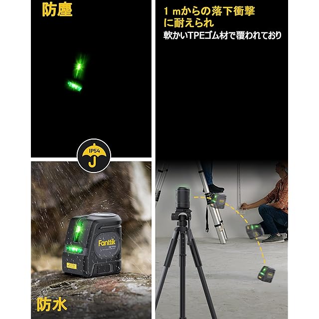 高精度の明るい緑色レーザーダイオードと角度拡張: D2 Proは、従来の赤色レーザーよりも4倍明るい先進的な緑色レーザー技術を採用しています。投影範囲は30メートルで、10mの精度は2.4mmです。このレーザーレーベルは、120°の水平線と130°の垂直線(天井をカバー)を投影でき、さまざまな水平付け及び位置合わせに適しています