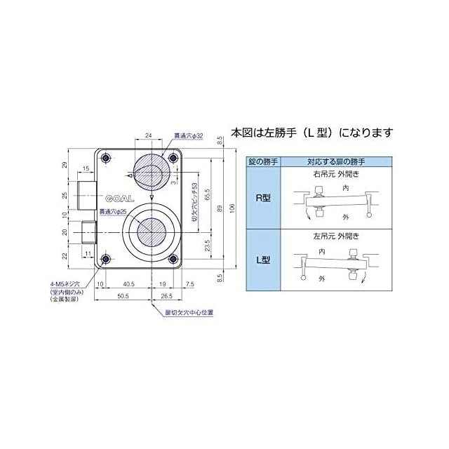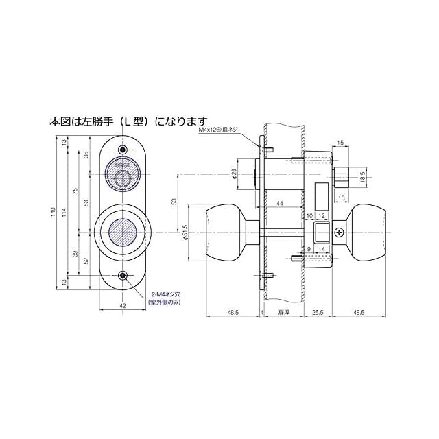 ゴール ドアノブ 鍵付き P-4350ケースセット 外開き・左右勝手有り 右勝手R:外開き