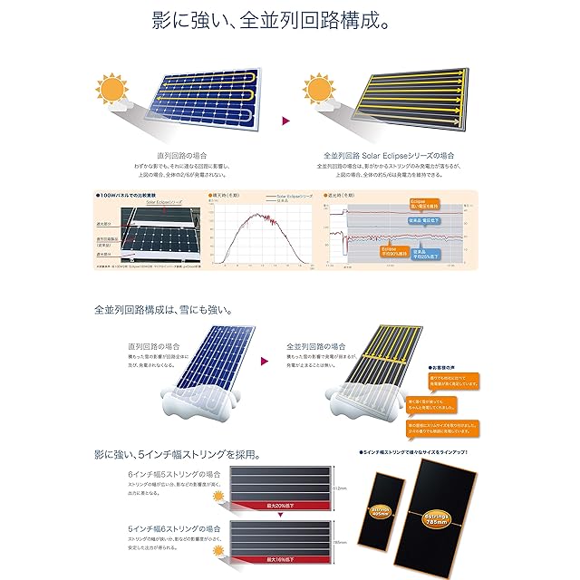 ★自社製、影に強い!! 【GWSOLAR 太陽光パネル135W / 全並列ソーラーパネル】【12V充電用 7.34A / 4並列】変換効率19% 12Vシステム充電用、革新的なセルの造り、高い発電効率を実現!国際認証TUV・JPEA登録。※日本語取扱説明書付き