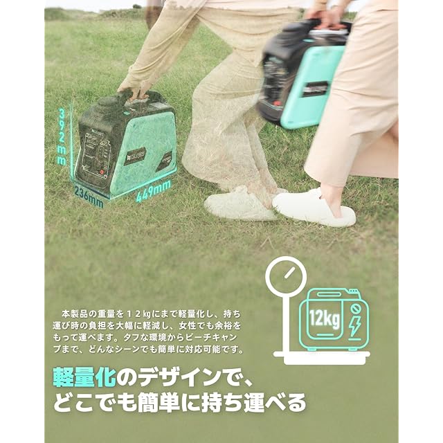 【女性でも軽々と持ち運べる軽量化】 ドクターズバッグのようなコンパクトボディで助手席や後部座席の足元にもピッタリ収まり、12kgの軽さ、アウトドアやいざという時に女性や年配の方でもラクラク持ち運べます。 kareyouのブランドカラーを使用し、弊社の宗旨の上品さ、清潔感、無限の可能性やポジティブな印象を与えます。 おしゃれなデザインでキャンプの気分が一段と高めながらら、アウトドアや新しい事にも挑戦したくなる様、災害時でも明るい気持ちになるように設計をしております。