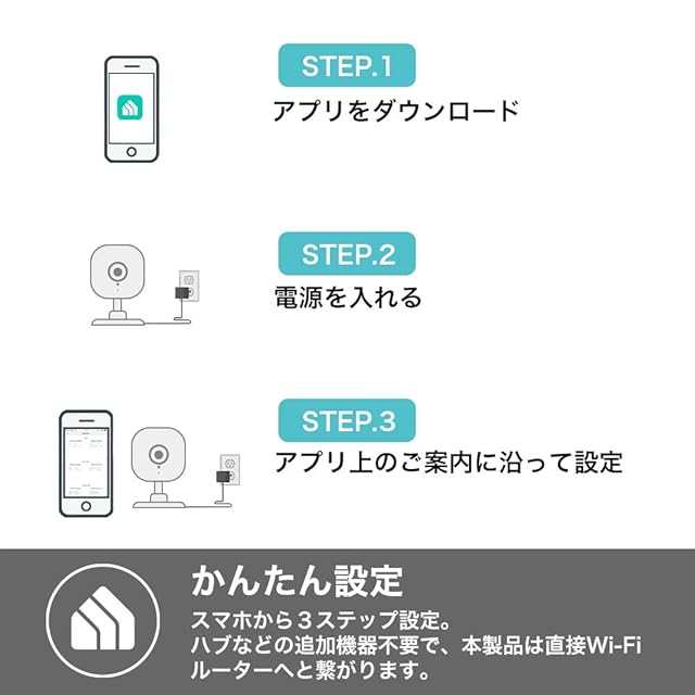 [かんたんセットアップ] WiFi環境とスマホのみで簡単に設定ができます。