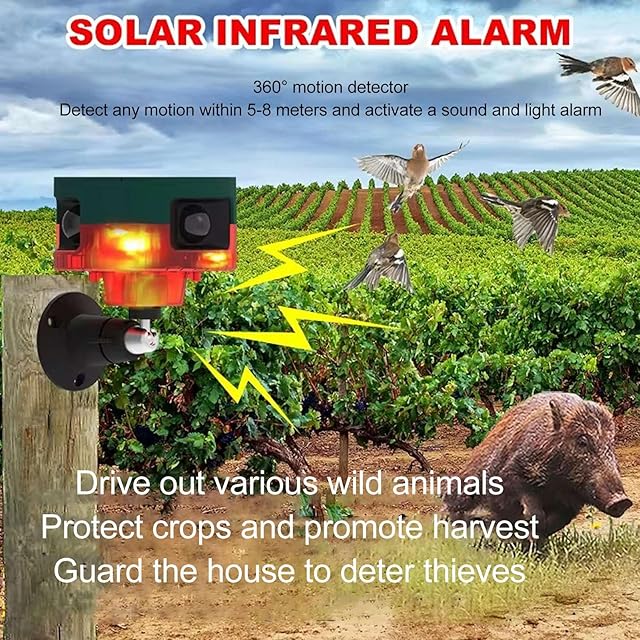 360°カバレッジと勧告警告:3つのモーション検出器を備えたモーションセンサーアラームのソーラーアラームは、5〜8メートル以内の動きを検出し、音と光のアラームを起動します。 129dbのけたたましいサイレンと6つの明るく点滅するLEDにより、あなたの敷地への動物や侵入者を阻止します。