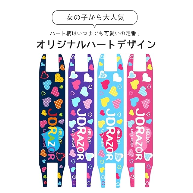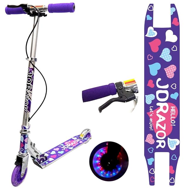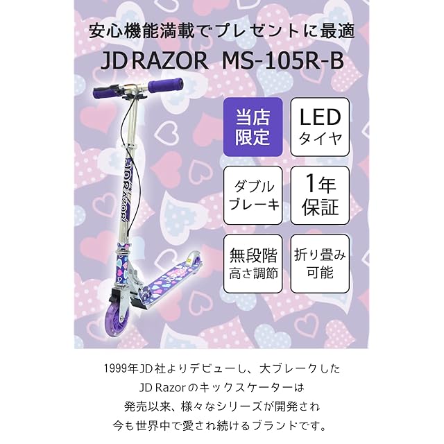 JD RAZOR 【 国内メーカー 組立不要でプレゼントに最適 】 キックボード 子供 小学生 (高さ自由調整/ハンド フット ブレーキ付き/光る LED タイヤ/折りたたみ コンパクト/軽量 & 頑丈 / 2輪) (ハート柄 ロイヤルパープル)