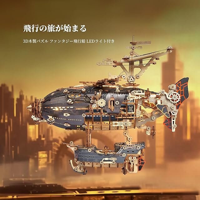 【スチームパンクのファンタジー飛行船デザイン】この3D木製飛行船パズルで、空の不思議を体験してください。魅惑的なスチームパンクスタイルにインスパイアされたこのパズルは、複雑なテクスチャーと見事なデザインを誇り、創造性と驚きをかき立てる魅惑的なLEDライトディスプレイを備えています。