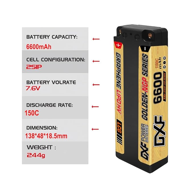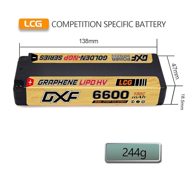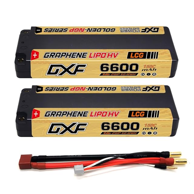 DXF バッテリーの威力解禁!DXF 2PCS 2S 7.6V 150C 6600mAh LCG ハードケーリポ、ラジコン リポバッテリー。5mm弾丸付き、RC1/10車両、トラック、ボートに最適な高性能リチウムポリマー素材のラジコン バッテリー