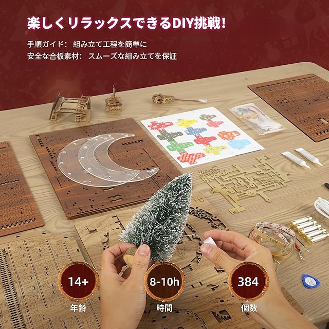 【完璧でやりがいのあるDIYプロジェクト】この3D木製パズルは、初心者から経験者まで楽しめるように設計されています。組み立てにかかる時間は8~10時間で、美しいホリデーインテリアを作りながら、リラックスして魅力的なアクティビティを楽しむことができます。