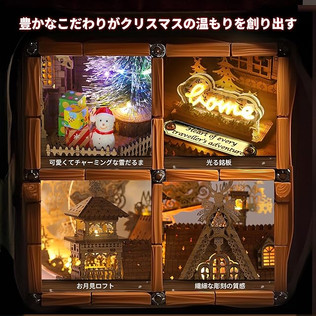 【ディテールと雰囲気が豊かな立体パズル】雪だるま、光るクリスマスツリー、月のランプ、お月見ロフトなど、クリスマスをテーマにしたディテールが満載。クリスマスのエッセンスを取り入れた楽しいディテールが満載です。