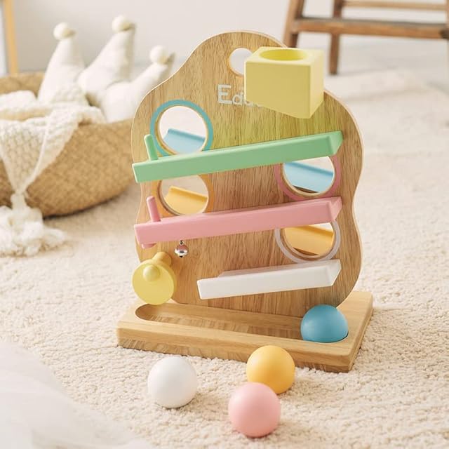 赤ちゃんが夢中になること間違いなし。見え隠れするボールに興味津々です。何度でも転がしたくなる木のおもちゃのスロープトイです。優しい肌触りの天然木の赤ちゃんへのプレゼントにぴったりです。