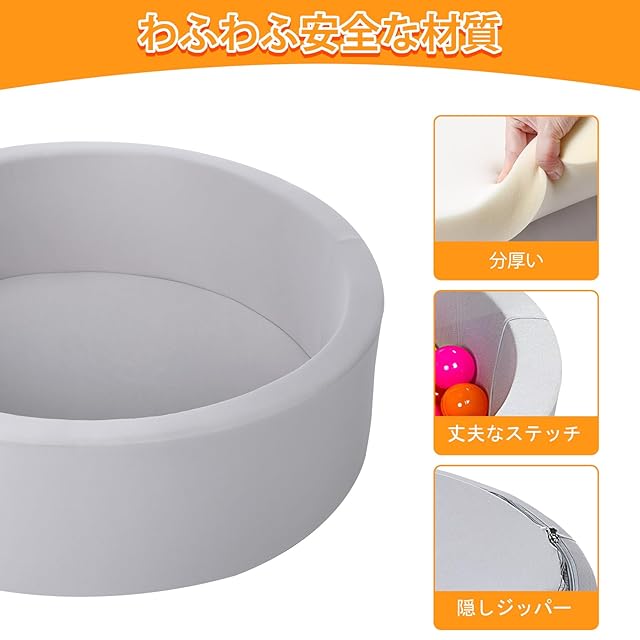 ボールプール 円形フォームプール 室内遊具 高密度フォーム 柔らかい質感 ベビー・赤ちゃん・子供 知育玩具 ボールハウス カラーボール おままごと 知育玩具 北欧風 キッズテント 誕生日・子どもの日・出産祝いのプレゼントに最適 (グレー)