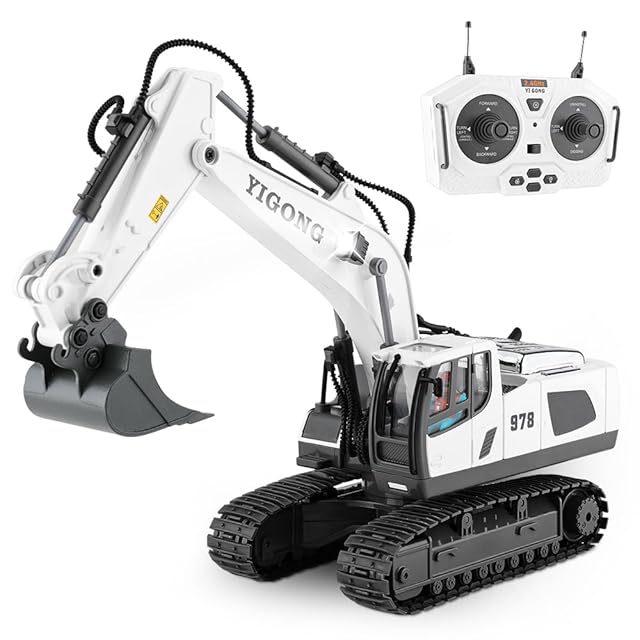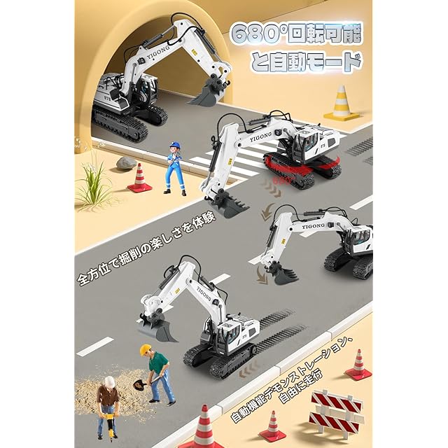 【2.4GHzのリモコン&多機能操作】 2.4GHzのリモコン技術を採用しており、最大30mの範囲で操作が可能です。前進、後退、左右への旋回、さらに680°のボディ回転が自由に行えます。また、自動モードも搭載されており、ショベルカーの操作がより簡単になります。