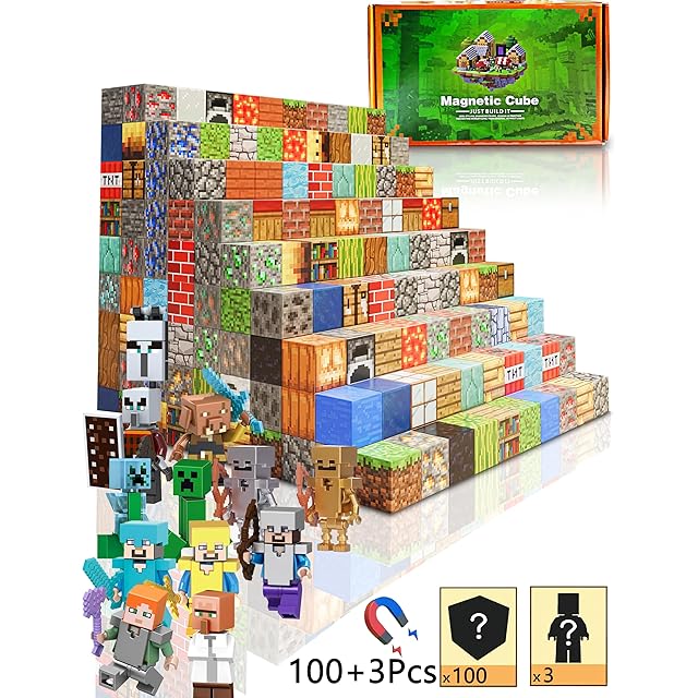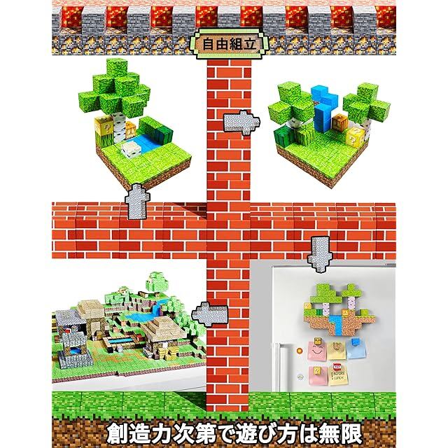 マイクラ風 マグネットブロックセット 磁石 おもちゃ マグブロックセット PX MASTER DIY 磁性構築 ボードゲーム バランスゲーム 磁気ブロックプレイセット マグネットパズル ランダム100ピース入り [並行輸入品]