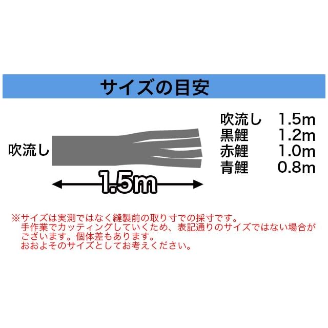 設置掲揚に必要な物は全てセットされていますので、簡単に設置する事が出来ます。吹流しには伝説の『昇龍門の滝のぼり』を再現。金の鯉が滝を登って本金の龍になる場面を力強く表現しました。
