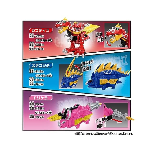 ガブティラ、ステゴッチ、ドリケラの3体が合体し、キョウリュウジンが完成します。