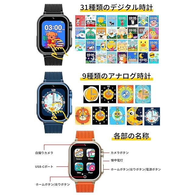 [超高強度亜鉛合金ダイカスト製] キッズ 腕時計 子供 時計 女の子 おもちゃ 男の子 自撮りカメラ ゲーム 音楽 懐中電灯 タイマー 歩数計 USB急速充電 日本正規品 (ブラック)