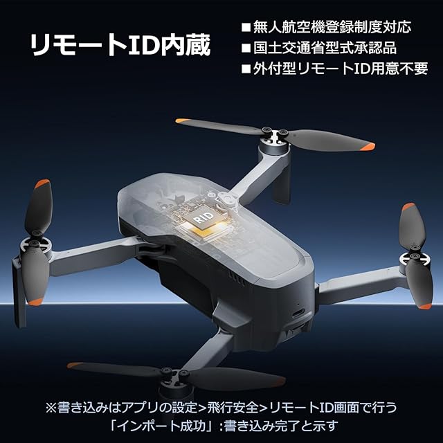 【リモートID内蔵・Potensic Careサービスに対応】Potensic Eveアプリの設定>飛行安全>リモートID書き込み画面でDIPSアカウントにログインしたら、リモートIDが自動的に書き込みます。(書き込みを行う前に、国土交通省のDIPSシステムにて機体登録の手続きをお済ませてください。機体登録時に入力したドローン製造番号は必ずアプリに表示されている機体SNと一致する必要があります。)「インポート成功」と表示している場合、書き込み完了と示します。アクティベーション完了後の48時間以内にPotensic EveアプリでPotensic Careサービスをご購入いただけます。リフレッシュ交換1年版とリフレッシュ交換2年版、2つのプランが選べます。専門的なアフターサービスを提供しており、アプリで迅速な対応が可能です。