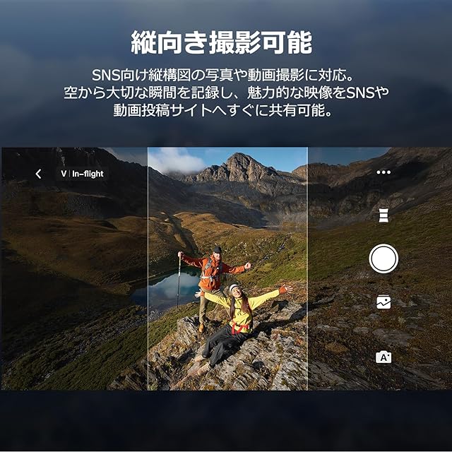 【SNSにぴったりな縦向き撮影・クイック転送】SNS向け縦構図の写真や動画撮影に対応します。クイック転送という新しい機能が追加されましたので、Bluetooth機能を利用してボタン一つで機体から直接撮影データを高速でスマホにダウンロードでき、パソコン経由でSDカードから撮影データをコピーする手間が省け、すぐにtiktok、instagramやXに投稿できます。